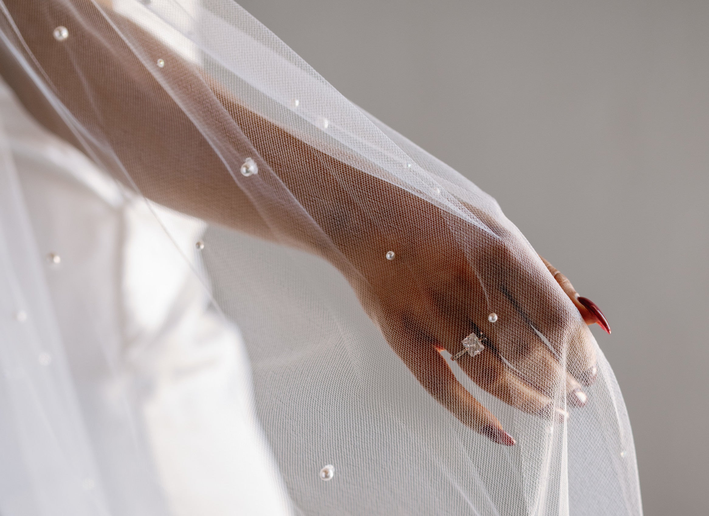 If you’re unsure what veil will go with your dress, a good place to start is matching the veil length to the gown length.